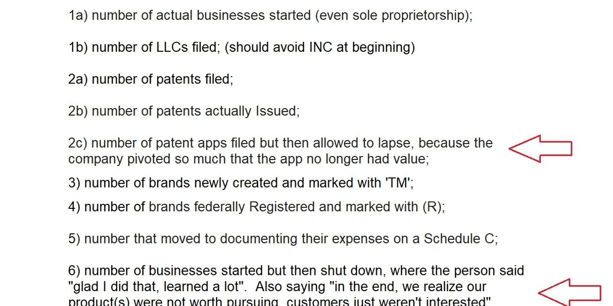 Typical business metrics for Incubators and Accelerators are often misleading and inaccurate, and not an indicator of success or advancement. One example is Theranos, who had >135 Issued Patents, all of which were invalid and worthless (nobody read them). Equally important to what false-metrics incubators do track, are the important data-metrics (often easily available) that they don't track. See above.