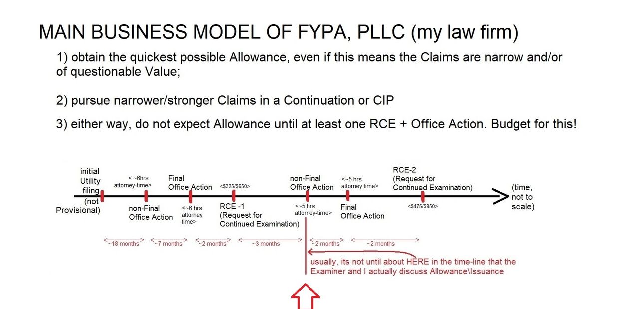9) Our desired, optimal customer is someone that is aware that patents cost significant money, and that the patent process is a slow-bleeding process somewhat comparable to being on a toll-road of uncertain length. Getting a patent all the way to Issuance usually costs at least $7000 and often $9000, plus usually takes at least 2.5 years.
